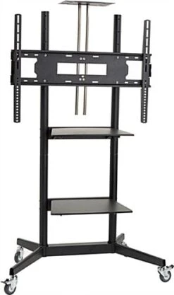 This plasma screen stand includes two shelves that can hold additional audio visual equipment. Each flat panel TV cart that has ledges for media can help display a selection of materials including meeting notes, small projectors, DVD and VCR players. Additionally, each monitor mount that is office furniture has a camera shelf which is great for video conferencing. This flat panel TV cart that has an integrated bracket helps increase visibility for presentations, advertising, and overall display. The mounting fixture can accommodate a wide range of VESA sizes for the common LCD monitor. This flat panel TV cart holds a plasma screen 40″-80″ large for display. Compatible VESA sizes include all monitors between 200×200 up to as large as 800×600 making this stand an otherwise universal audio visual plasma screen mount! This monitor display stand ships unassembled to save on shipping costs and is complete with all hardware except a basic screwdriver which can be found at any local hardware store. Invest in this affordable advertising and display tool today!