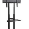 This mobile TV console is great to bring to a trade show for its light weight and versatility in monitor size. Standing at 67.5” off of the ground, this bracket is an ideal, mid-sized fixture. This rolling TV console features four locking caster wheels that help to effortlessly transport the bracket to different locations and secure it in place to ensure that the expensive mounted LCD screen is safe. Each entertainment center can withstand a maximum load of 180lbs which typically holds 37” to 70″ flat panel monitors. This TV console features a height adjustable bracket between 64” and 67.5” as well as a shelf that can be fixed between 23” and 27” off of the floor and can hold media such as laptops, DVD, and VCR players. Each flat panel cart has a VESA standard compatibility range between 200×200 and 600×400, including most other common sizes between these two.