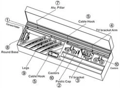Confidently carry your trade show display to various events with this TV stand with custom case. Built with robust construction and soft foam, your mount will be kept safe from dings and scratches while on the road. A wheeled base on both the black TV stand and container allow easy movement through venues and crowded trade shows. The mount supports various features such as rotating or tilting and can accommodate flat panel displays ranging from 30” to 84” in size. Each container is divided into sections for every piece of the disassembled unit to fit into for safe keeping. Furthermore, when not in use you can lock your TV stand away with the 4 padlock receptive latches.