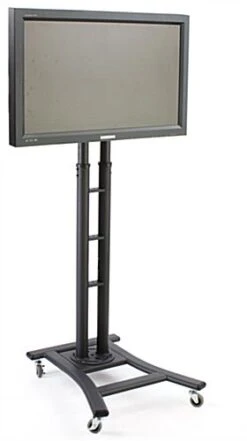 This adjustable portable flat screen TV stand offers convenience and stability, making it a great choice for high traffic public environments.