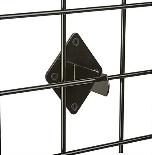 Hang up to two full-sized panels (sold separately) with accessories and merchandise using these black grid wall mount brackets. Sold in a set of 8, each wire panel display holder can be set up in your shop in a matter of minutes. Metal construction and a glossy finish gives the diamond-shaped grid wall mount brackets the perfect style to match your existing setup.