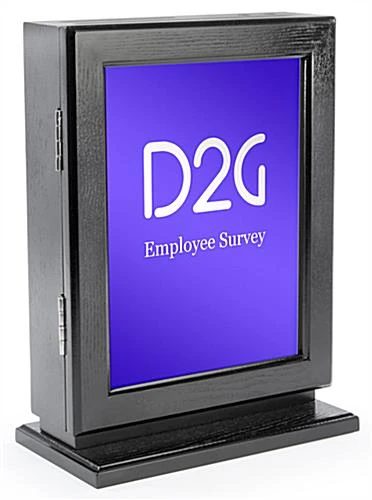 This black wall mounted ballot box is perfect for small business environments. Many employers display suggestion bins to collect anonymous feedback from employees. The wall mounted ballot box features a locking hinged door to prevent access to the content. There are also two compartments and an 8×11 sign holder on the front panel. The wall mounted ballot box is sold with an optional security pen and optional base for countertop use. Use this comment bin to collect valuable feedback from employees or the general public.