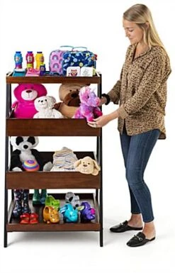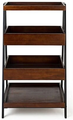 Rustic Wooden Dump Merchandising Shelves with Four Dark Brown Tiers