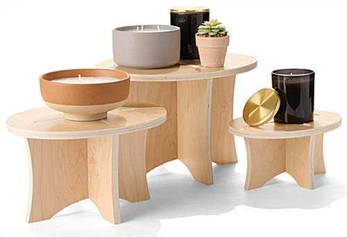 Wood Display Risers with Quick Assembly and Knockdown Design
