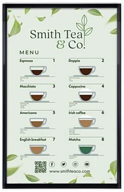 The 11 x 17 poster frame is 11″w x 17″h, which is great for use in busy locations because it will be instantly noticed. This acrylic sign holder, poster display has a neutral casing that can be placed almost anywhere. This graphic display is an ideal picture frame for offices, classrooms, conference rooms, hallways, lobbies, and anywhere else you prefer to hang a graphic.