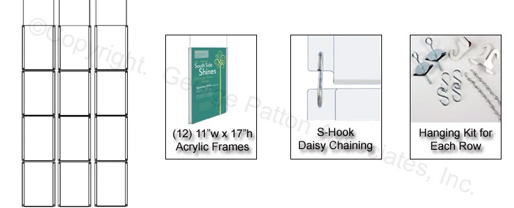 Suspended Sign Grid: (12) 11″w x 17″h Frames & (6) 60″ Hanging Chains