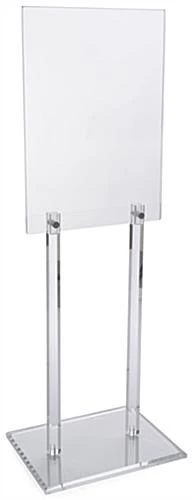 These suspended sign systems include acrylic frames and a ceiling mount kit. The hanging hardware kit comes with toggle bolts for use in lathe and plaster ceilings, brackets for use with drop-support ceilings, s-hooks and 60″l chains. This suspended sign that hangs from the ceiling is ideal for use in retail stores, office buildings, banks, hotels and even warehouses. The poster frame top-loads, and showcases an 11″ x 17″ print. Simply load two posters back-to-back if the suspended sign grid that is double-sided will be place in a location where customers will view it from multiple vantage points. Each frame is made from a single panel of folded 1/8″ thick acrylic. This suspended sign display coordinates with any setting as a result of the frameless acrylic construction of the poster holder.