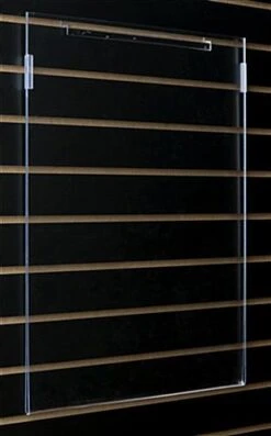 These Lucite poster holders display 18″w x 24″h signs. The slat hook attaches to most standard slat wall panels without using any mounting gear or adhesives. These Lucite poster holders are the perfect promotional tool for events, sales and general advertising. Changing your print couldn’t be easier, just remove the side clips and insert the signage without having to move the holders from their place. Slatwall sign frames, Lucite poster holders are great to display advertisements, prints or product graphics.