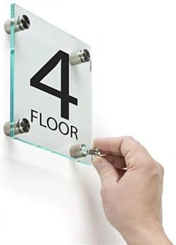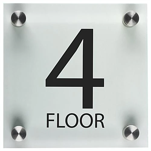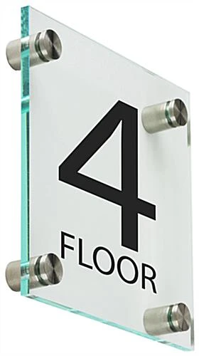 A floor level building sign adds style and professionalism to exits or entry areas in your workplace environment. These stair access wall displays feature the number of the story that your office is on to clients walking in. Adding this acrylic building sign to entry areas or exits is a great place to notify the public where they’re heading. The wall accessory comes with four 1” steel standoffs to apply to a side surface for a very streamlined and low profile appearance. This sleek stair access wayfinding fixture offers a sign that also includes a green tint on the edge of the clear panel for a very polished look. These numbered acrylic plates give off the appearance of real glass, while maintaining the durability of plastic for years to come!