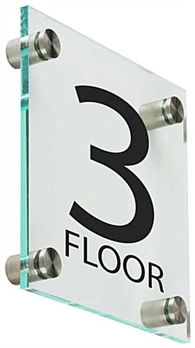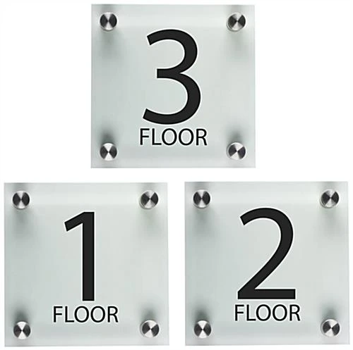 These floor number signs will look great in any business environment that includes stairwells or elevators. The apartment building fixtures include 1” steel standoffs to screw into the wall and affix the acrylic panels atop to give it a nice, low profile appearance. The number signs will stand out due to the bold font pre-applied to the signage. Adding these to each level in your apartment will give your tenants and visitors a showcased message defining which story they’re currently on. Place the signage in multiple locations within the levels as needed to indicate to the public where they are and where they’re headed!