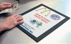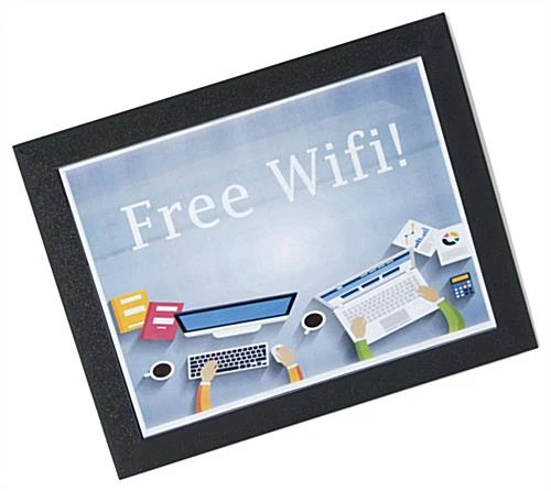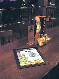 These countertop poster mats, sign displays are a great promotional unit. The counter top frame has a non-skid bottom and hard acrylic top will keep the graphic from moving when touched or written upon. These countertop poster mats are a durable, thin sign mat frame for counter top or tabletop promotions. The ultra thin 1/8″ frame of this sign display holds letter size signage (8-1/2″ x 11″). These countertop poster mats allow for quick and easy changing of signage by removing the top plexi. This tabletop sign frame is ideal for counters at checkout such as in restaurants, banks, retail and much more.