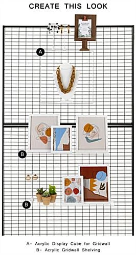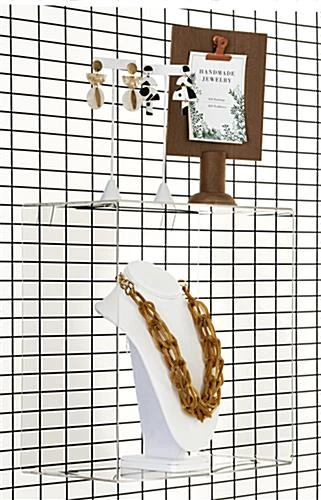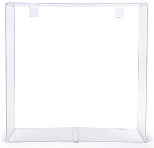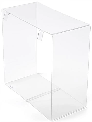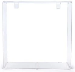 Maximize product visibility with our clear acrylic display cube for gridwall that offers patrons an unobstructed view of your best items at any angle. Each 14″x14″ frameless square wire panel accessory holds anything from artwork to jewelry, plants, pottery, and more. This transparent acrylic display cube with beveled edge design features a hollow center that grants multiple merchandising options within the unit as well as on top. Lightweight and durable, this 1/8″ thick frameless accessory is resistant to the harsh conditions of a busy shopping environment. Additionally, each unit features two angled mounting brackets for secure attachment to any standard wire panel fixture. Perfect for traveling exhibits such as pop-up shops, trade shows, and craft festivals, this acrylic display cube with hollow center is easy to install and remove, allowing you to effortlessly setup your feature presentation within seconds. Use this square wire panel attachment in tandem with more hanging accessories (sold separately) to create your custom visual showcase today!