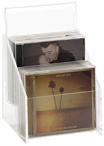 This CD rack is suitable for most any type of retail store environment. This clear acrylic holder houses up to 5 compact discs per tier for a total of 10 CD’s. Use this CD rack to feature a hot new release, or a collection of various holiday music. The tiered design enables users to offer a generous selection without taking up too much counter space. This CD rack that is made with clear acrylic is ideal for small stores that want to offer a limited amount of compact discs. This CD rack is often purchased by gift shops, convenience stores and greeting card stores. These types of retail establishments typically only need a small holder to display a featured disc or seasonal music.