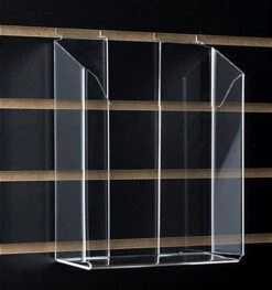 Slatwall Acrylic Display Accessory- This pocket is perfect to hold all your magazines and any of your other 8.5″ wide literature. This product’s dimensions are 8.625″w x 8″h x 2″d. It is made from clear acrylic so you are able to see the whole front of your magazine or literature. It can be easily attached to any of our slatwall panels. There is no need to have any additonal mounting materials, you simply just hook the pocket into the panel. It may be useful to use this product in addition to our other related products, to have a greater impact. These related products can be seen below.