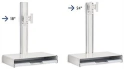 This monitor and keyboard wall mount features a retractable tray, perfect for storing your computer mouse, pens, folders, and other work supplies. The sleek white station offers a workspace for your laptop or tablet, making it effortless to stand while working in hospitals, tech centers, dentist offices, warehouses, and more. This height adjustable monitor and keyboard wall mount has built-in cable management to keep cords organized and tucked away. Our durable desktop stand is compatible with 75 x 75 and 100 x 100 VESA devices, excellent for holding various sized screens. The height adjustable workstation with a retractable tray tilts 90 degrees for the perfect viewing angle. This heavy-duty station can hold up to 110 lbs and supports up to 33 lb screens. Use this easy-to-install monitor and keyboard wall mount to create an ideal workstation in offices, warehouses, libraries, and more to make your day-to-day tasks more manageable.