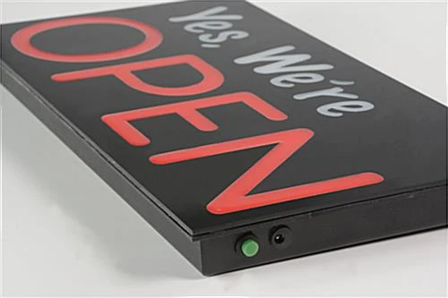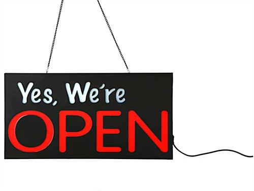 This we’re open sign is an essential marketing fixture for any retail establishment. Displays such as these let consumers know that the shop is available for business, or simply makes consumers aware of the outlet’s existence. This we’re open sign that is for stores has the ability to generate additional revenue by pulling in new customers. Each fixture catches guests’ attention by emitting bright, LED lights. This light up we’re open sign contains inner LED bulb strips that shine out through epoxy lettering on the front of the product. These bulbs illuminate the fixture with a continuous, bright glow, allowing customers to see the signage from far off. This LED we’re open sign goes in storefronts, an ideal location to for catching the attention of people passing by. Due to the unit’s light weight construction, the fixture is hung effortlessly in windows using the included mounting chain. This we’re open sign that hangs can also be mounted using rear wall mount brackets.